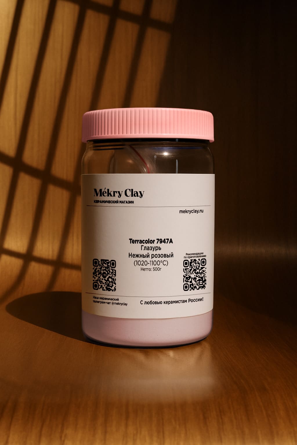 Непрозрачная блестящая розовая глазурь. Выглядит одинаково на разных глинах.