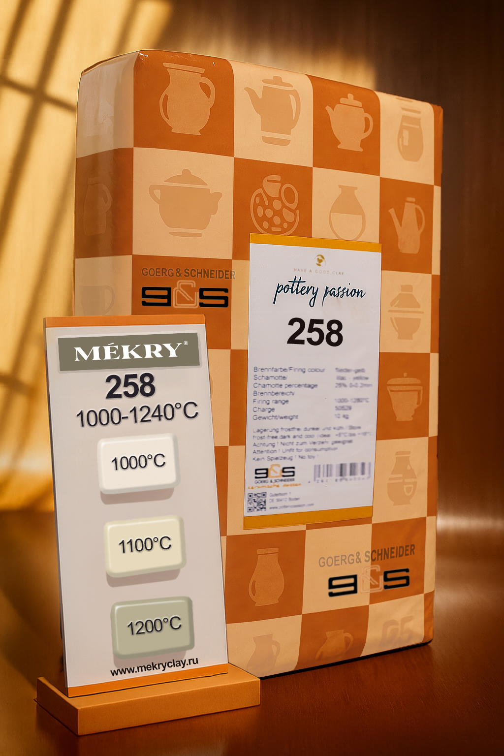 · Температура обжига: 1000-1240°С · Шамот: 25% · Размер зерна шамота: 0-0.5мм · Цвет: Бежевый · Производитель: GOERG & SCHNEIDER (Германия) · Вес упаковки: 10кг