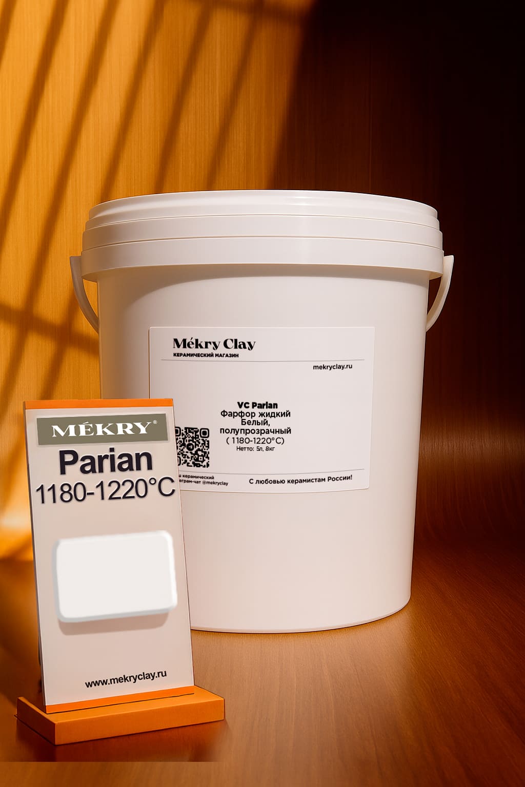 · Температура обжига: 1180-1220°C · Шамот: отсутствует · Цвет: белый, полупрозрачный · Производитель: Valentine Clays, Великобритания · Становится стекловидным при температуре 1220°C. · Самоглазирующийся фарфор. · Вес упаковки: 8 кг · Форма поставки: жидкиая литьевая масса в ведре объемом 5 литров.